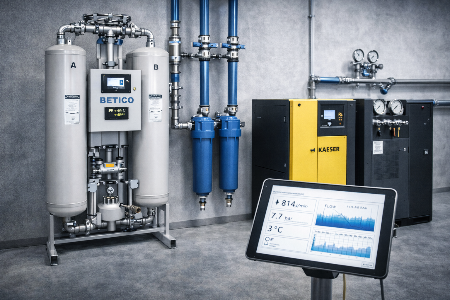 Los secadores eliminan la humedad del aire comprimido, evitando condensaciones, corrosión y problemas operativos en la red.